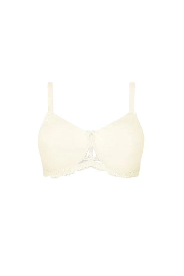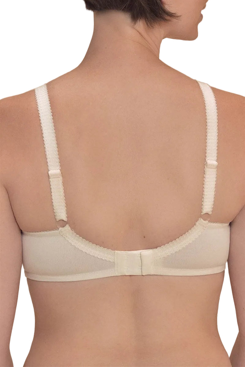 - Padded soft bra made of a comfortable cotton material at cups and back in combination with a rich cotton lace at the cradle